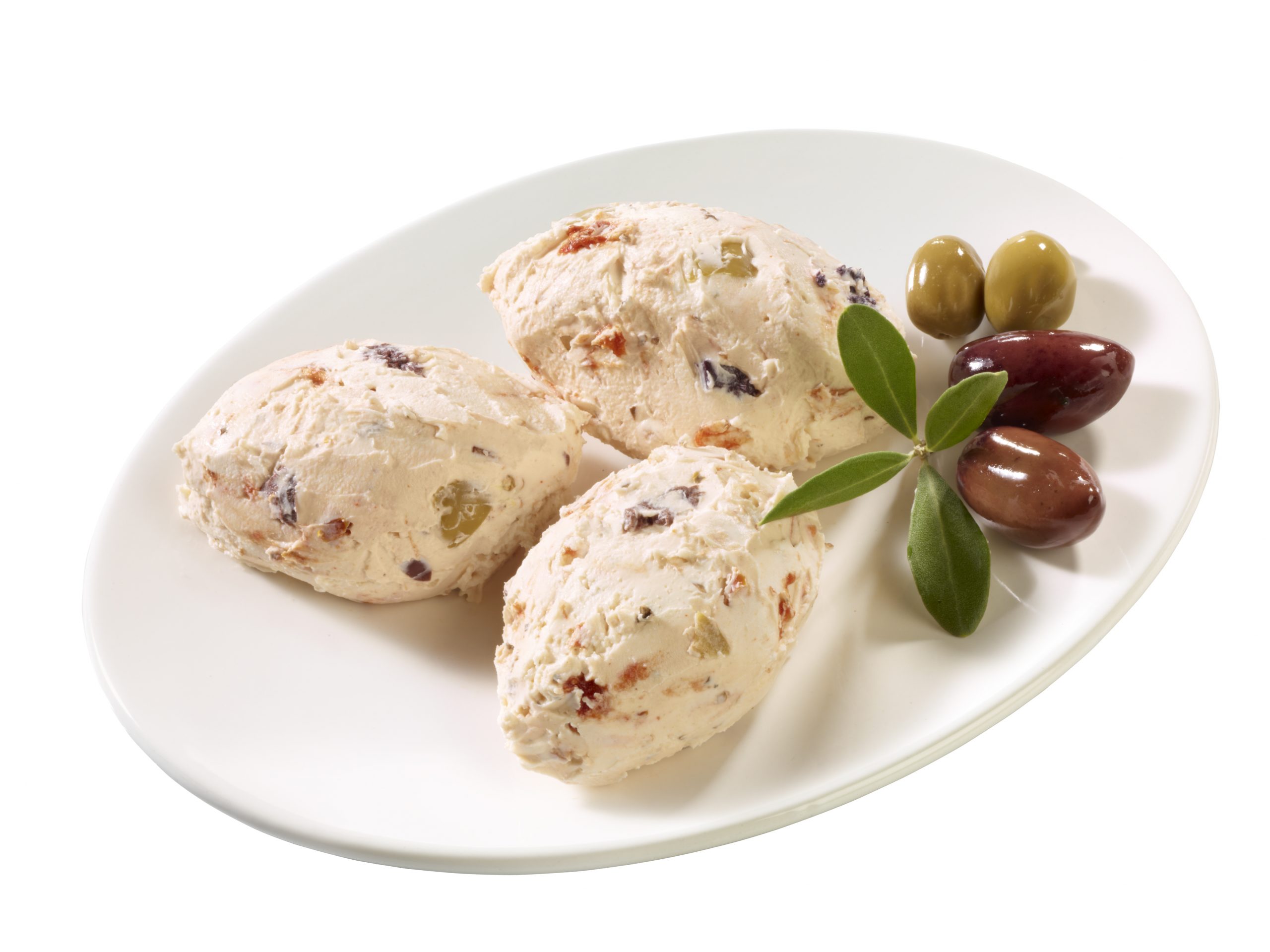 Cremige Frischkäsezubereitung mit ausgewählten Oliven und Tomaten, fein mediterran abgerundet.